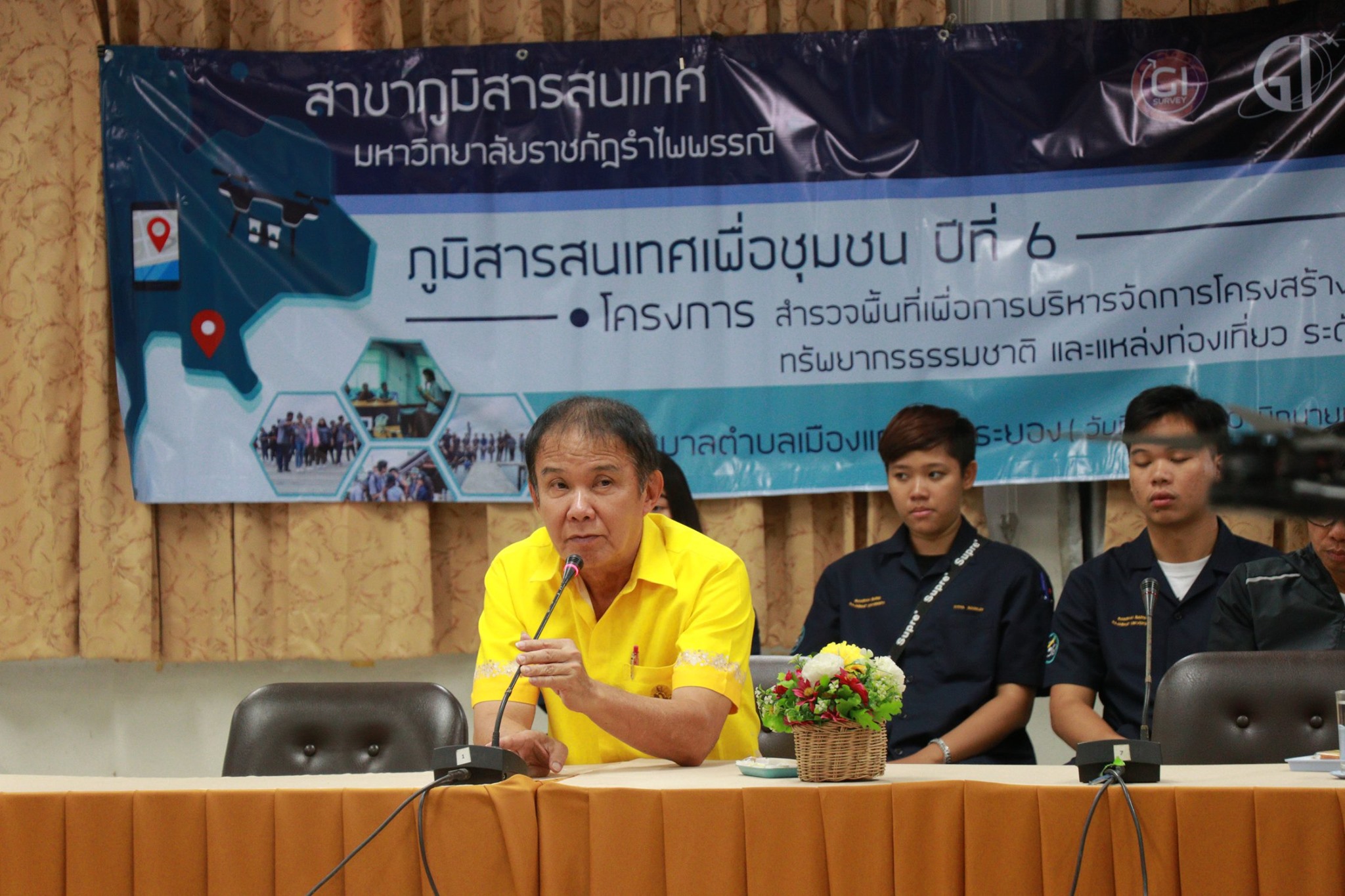 เมื่อวันที่ 19-20 มิ.ย. 62 ที่ผ่านมา สาขาภูมิสารสนเทศ คณะวิทยาการคอมพิวเตอร์และเทคโนโลยีสารสนเทศ ลงพื้น อ.แกลง จ.ระยอง เพื่อจัดโครงการบริการวิชาการ อบรมให้ความรู้เกี่ยวกับการเทคโนโลยีอากาศยนาไร้คนขับ (UAV) และ การทำแผนที่ท่องเทียว โดยได้รับความร่วมมือจากเทศบาลตำบลเมืองแกลง อนุเคราะห์สถานที่การจัดอบรม และมีนายสันติ ตังสวานิช นายกเทศมนตรีตำลเมืองแกลง เป็นประธานกล่าวเปิดการอบรม โดยการจัดโครงการบริการวิชาการนี้ เป็นการถ่ายทอดความรู้ด้านเทคโนโลยีสู่ชุมชน ซึ่งเป็นองค์ความรู้ที่คณะวิทยาการคอมพิวเตอร์และเทคโนโลยีสารสนเทศมีความเชี่ยวชาญ และได้จัดโครงการอย่างต่อเนื่อง
